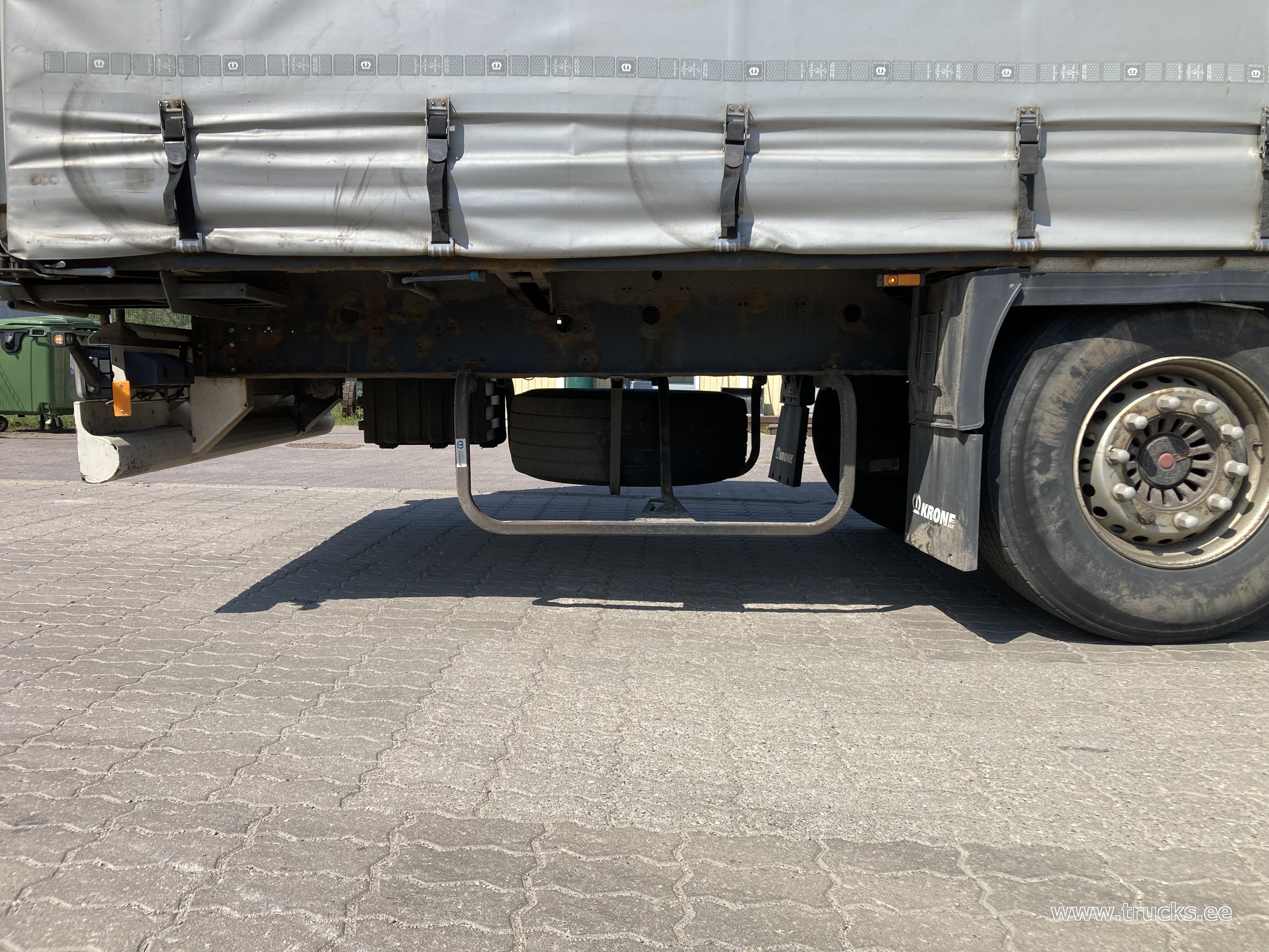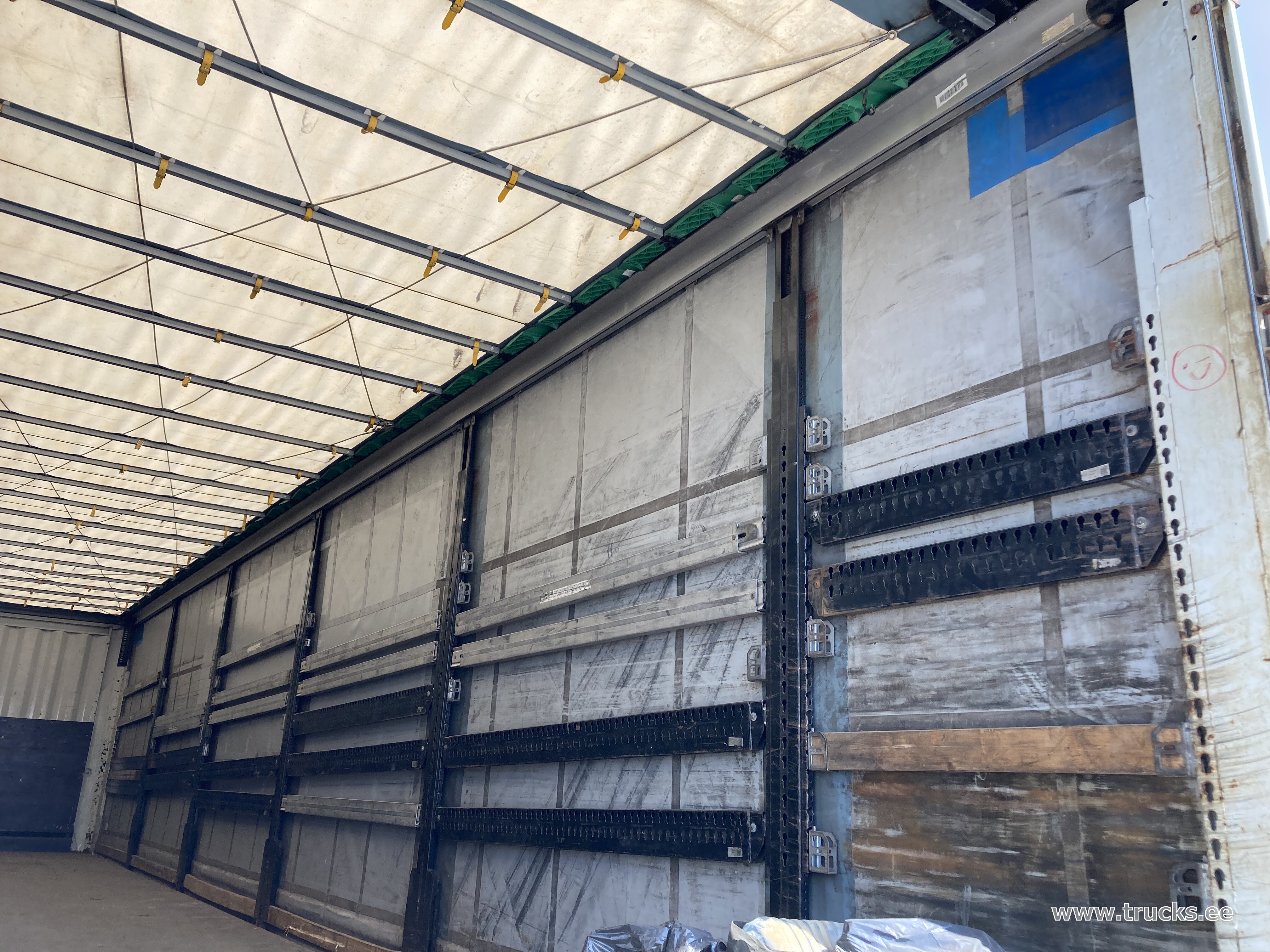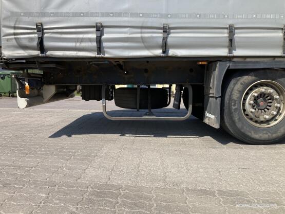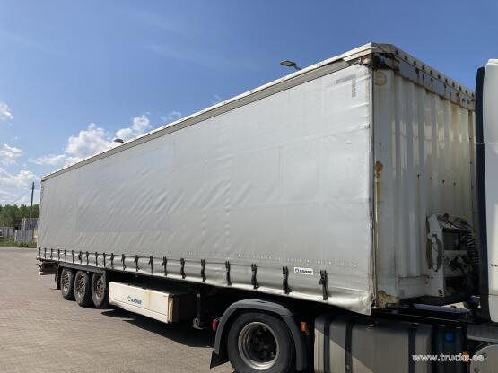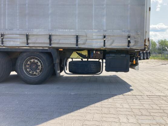 Lisamärkused Topeltlaadimise võimalusega kardinpoolhaagis, 17 ristitala topeltlaadimise jaoks, kaks varurattakandurit, topeltlukustus tagaustel, varuratas