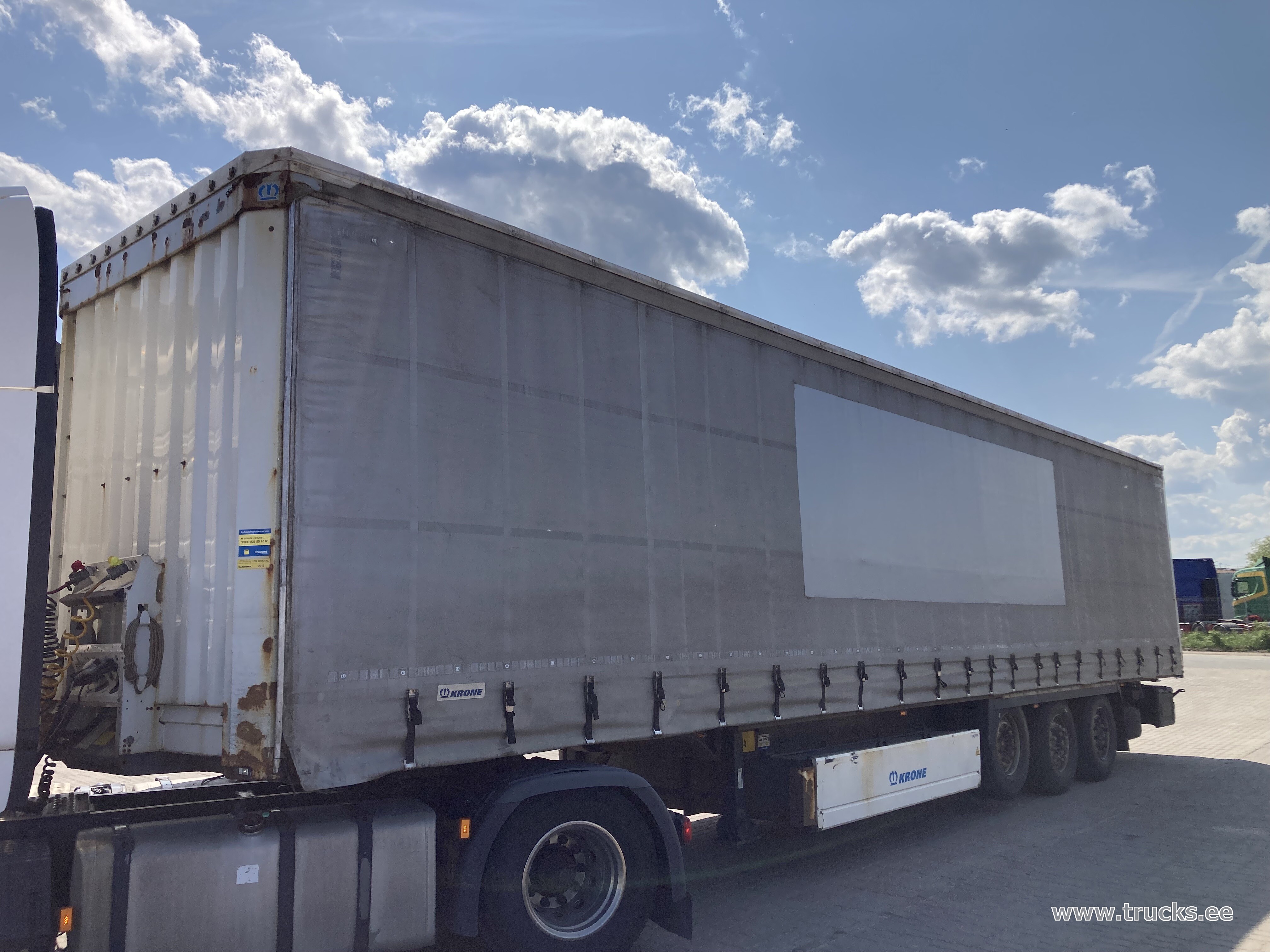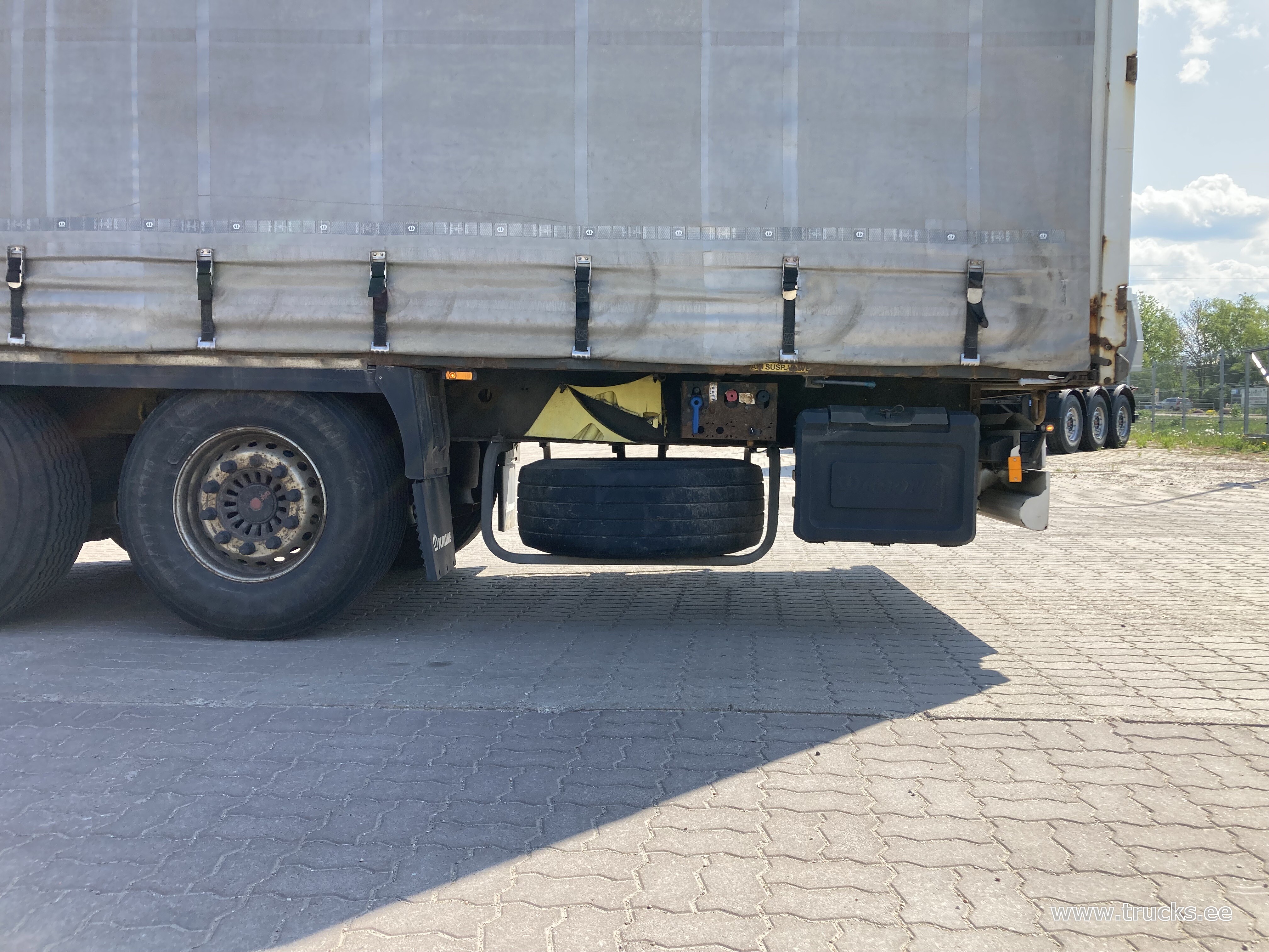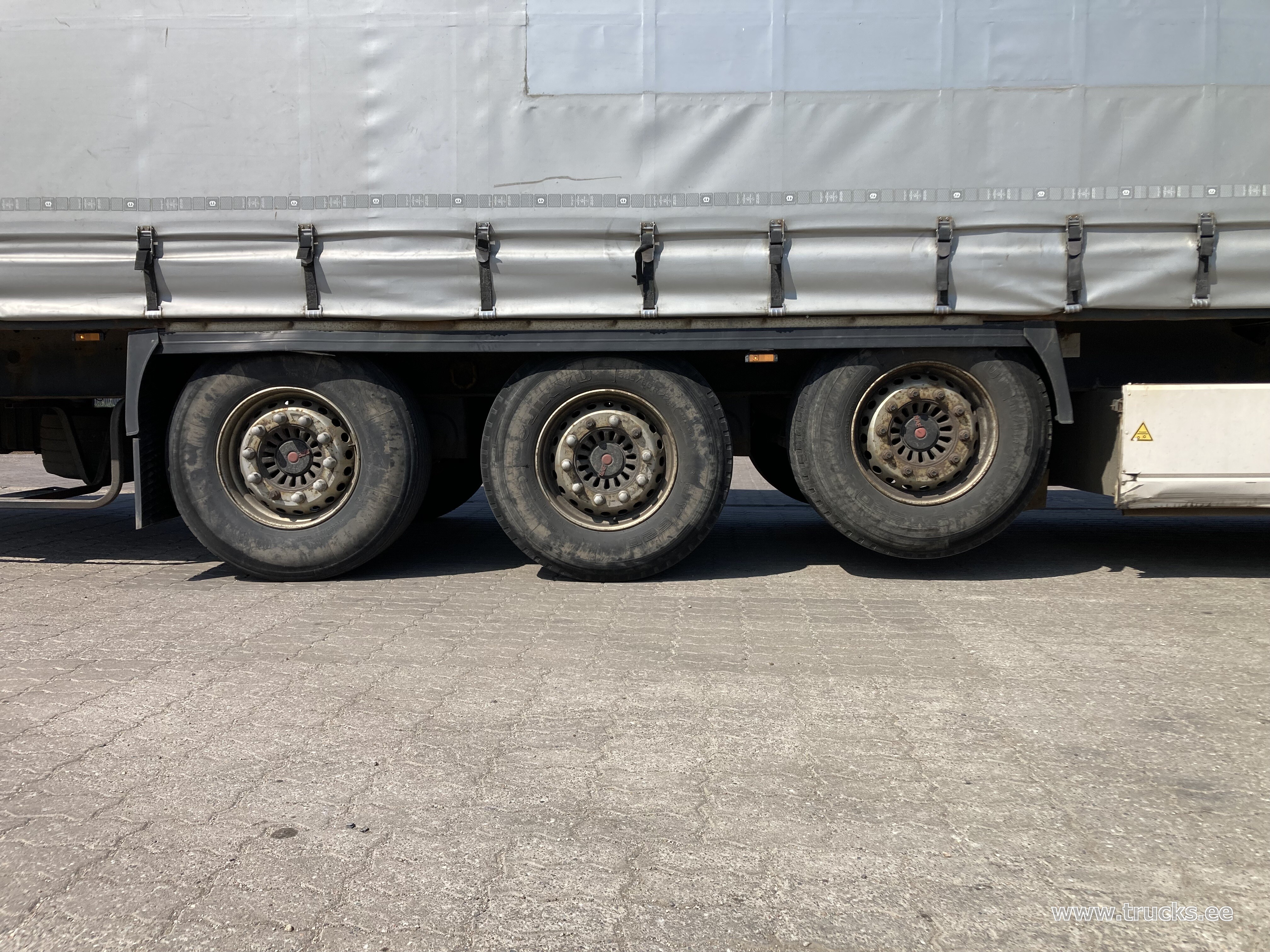 Lisamärkused Topeltlaadimise võimalusega kardinpoolhaagis, 17 ristitala topeltlaadimise jaoks, kaks varurattakandurit, topeltlukustus tagaustel, varuratas
