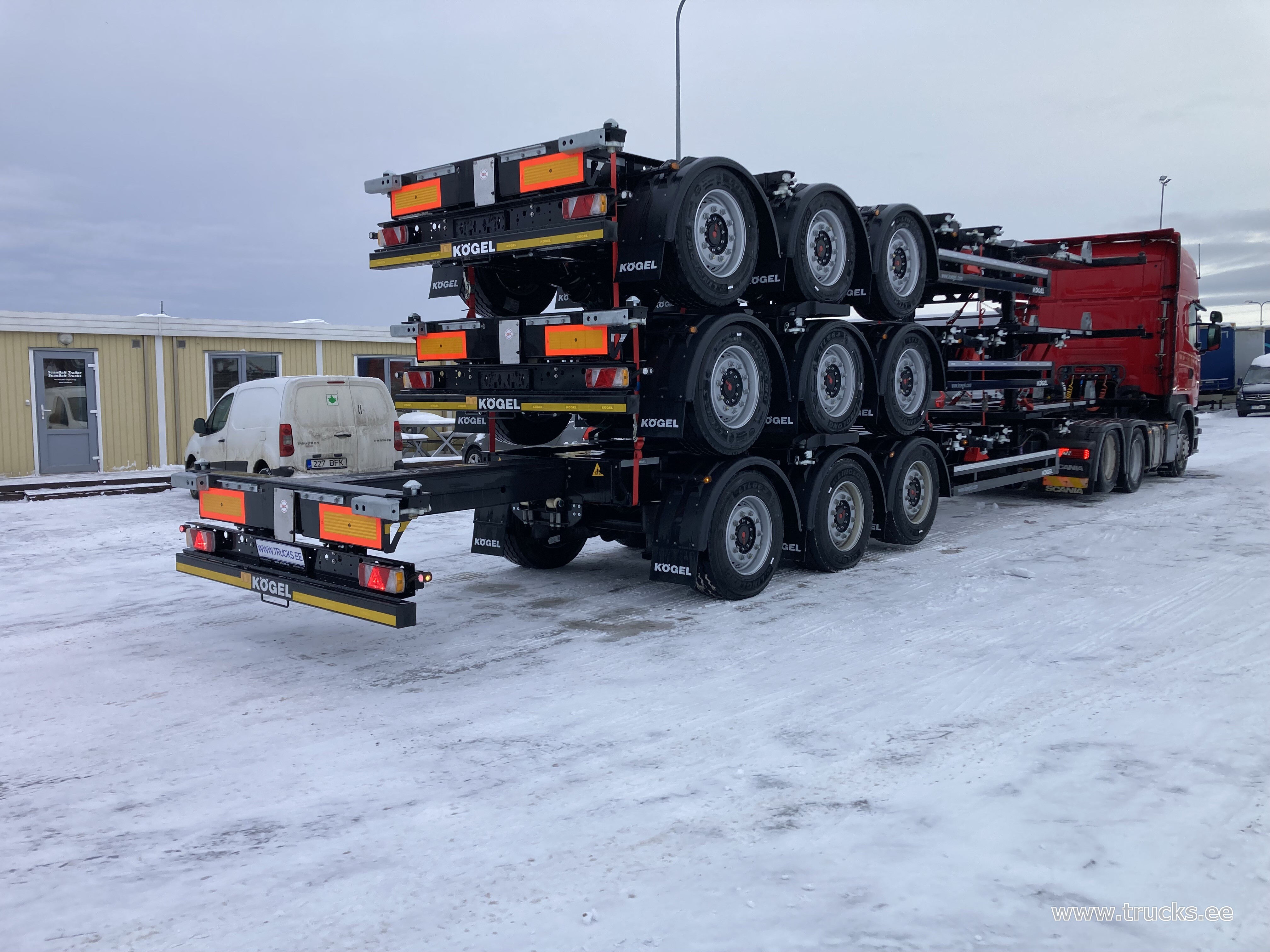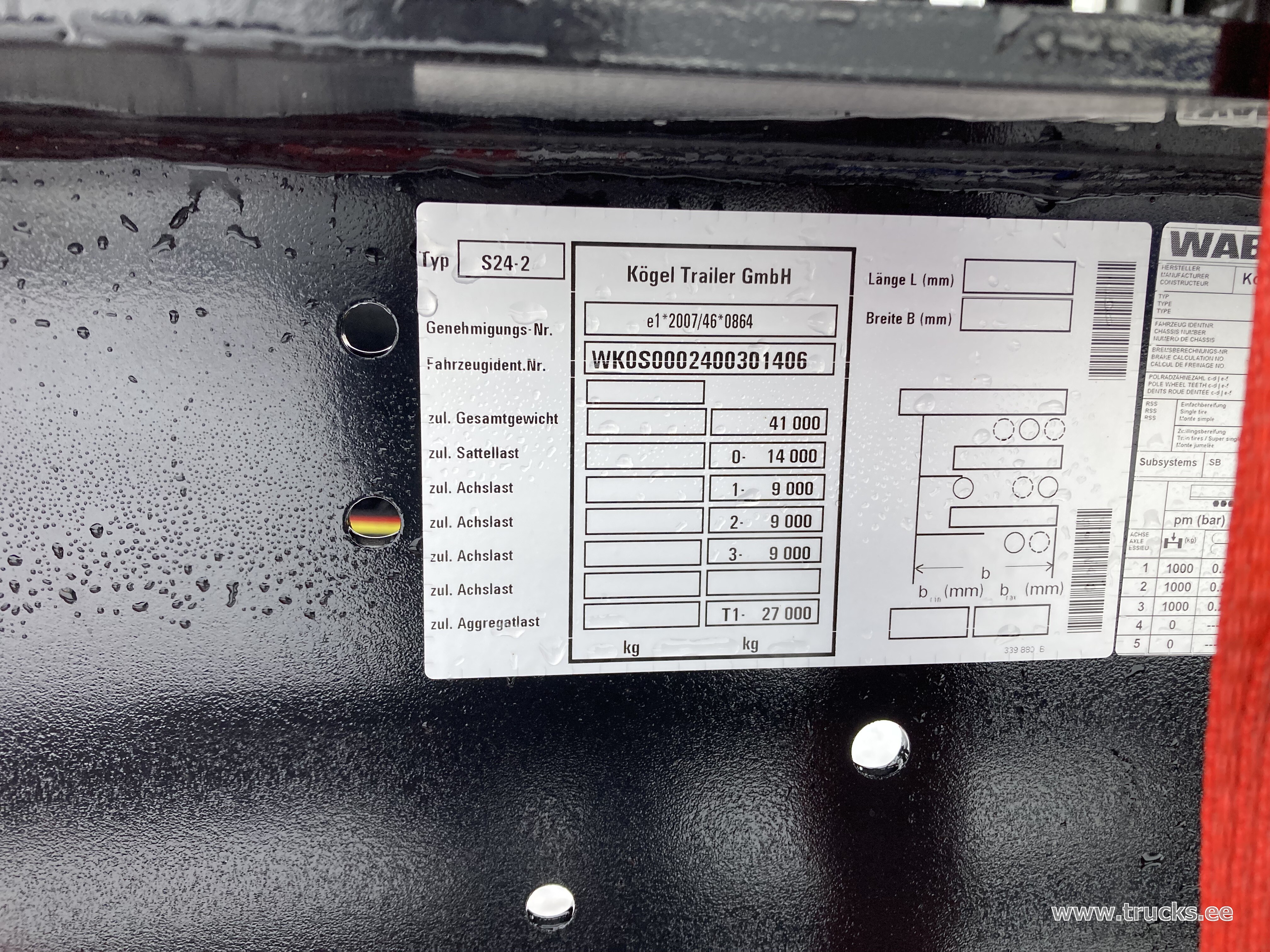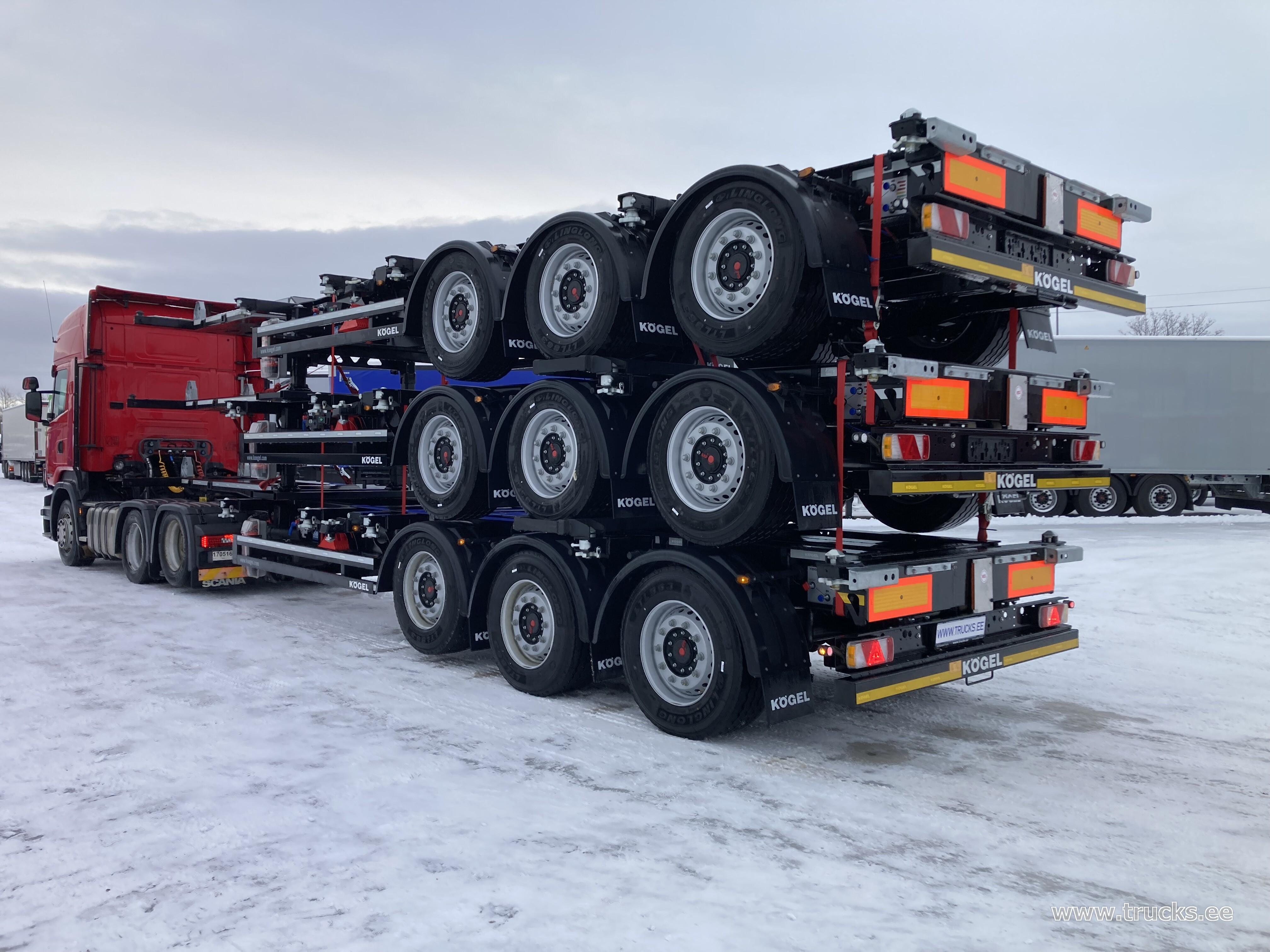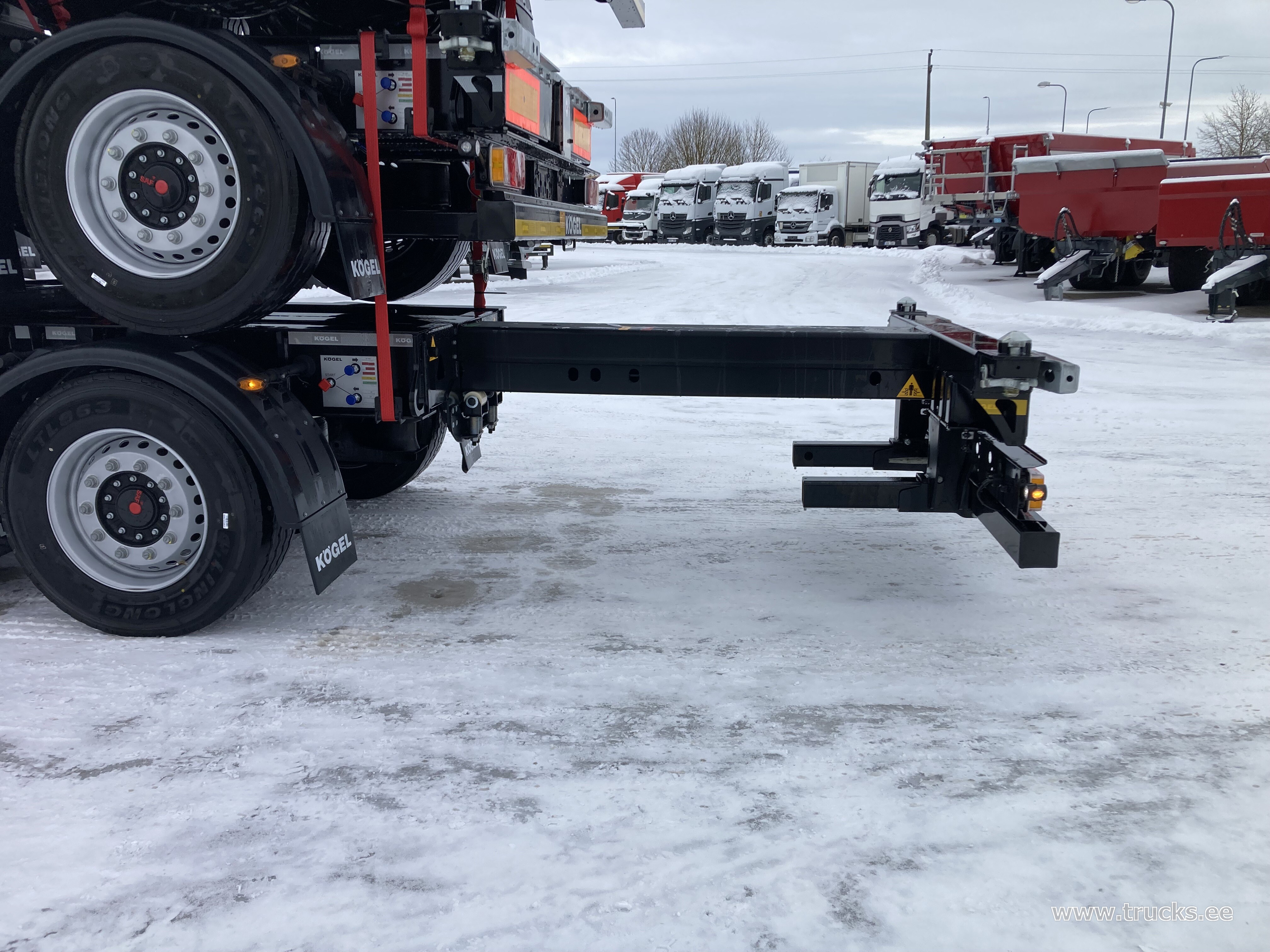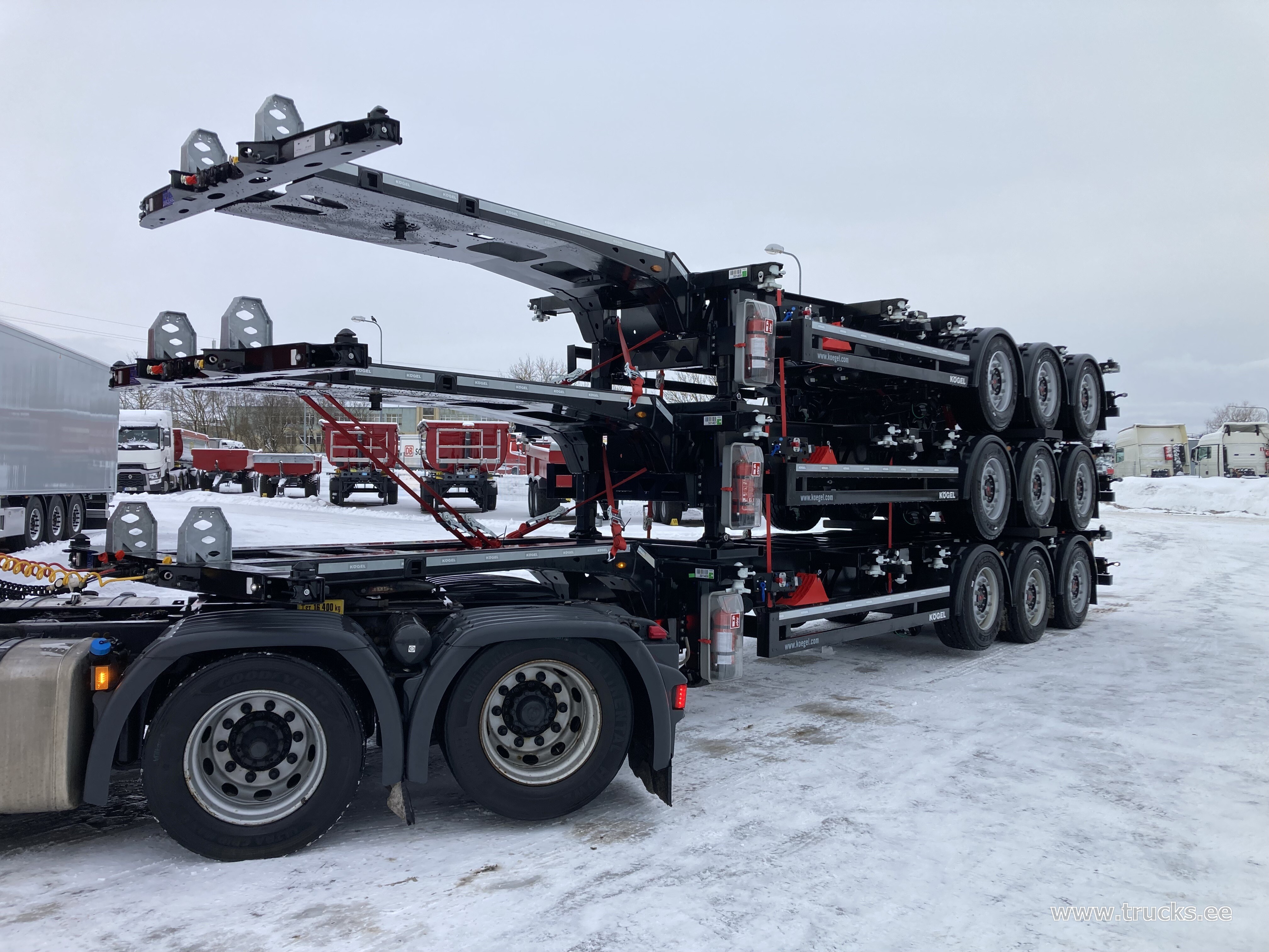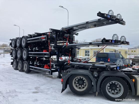 | Lisamärkused | eest pikendatav manuaalselt, tagant pikendatav pneumaatiliselt, dok.toru, SAF ketaspidurid, esimene ja kolmas sild tõstetavad, tulekustuti, ADR, AT, EX/II, EX/III, FL. Ühe haagise hind 28900EUR+KM |